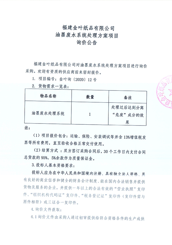 油墨廢水系統(tǒng)處理方案項目詢價公告