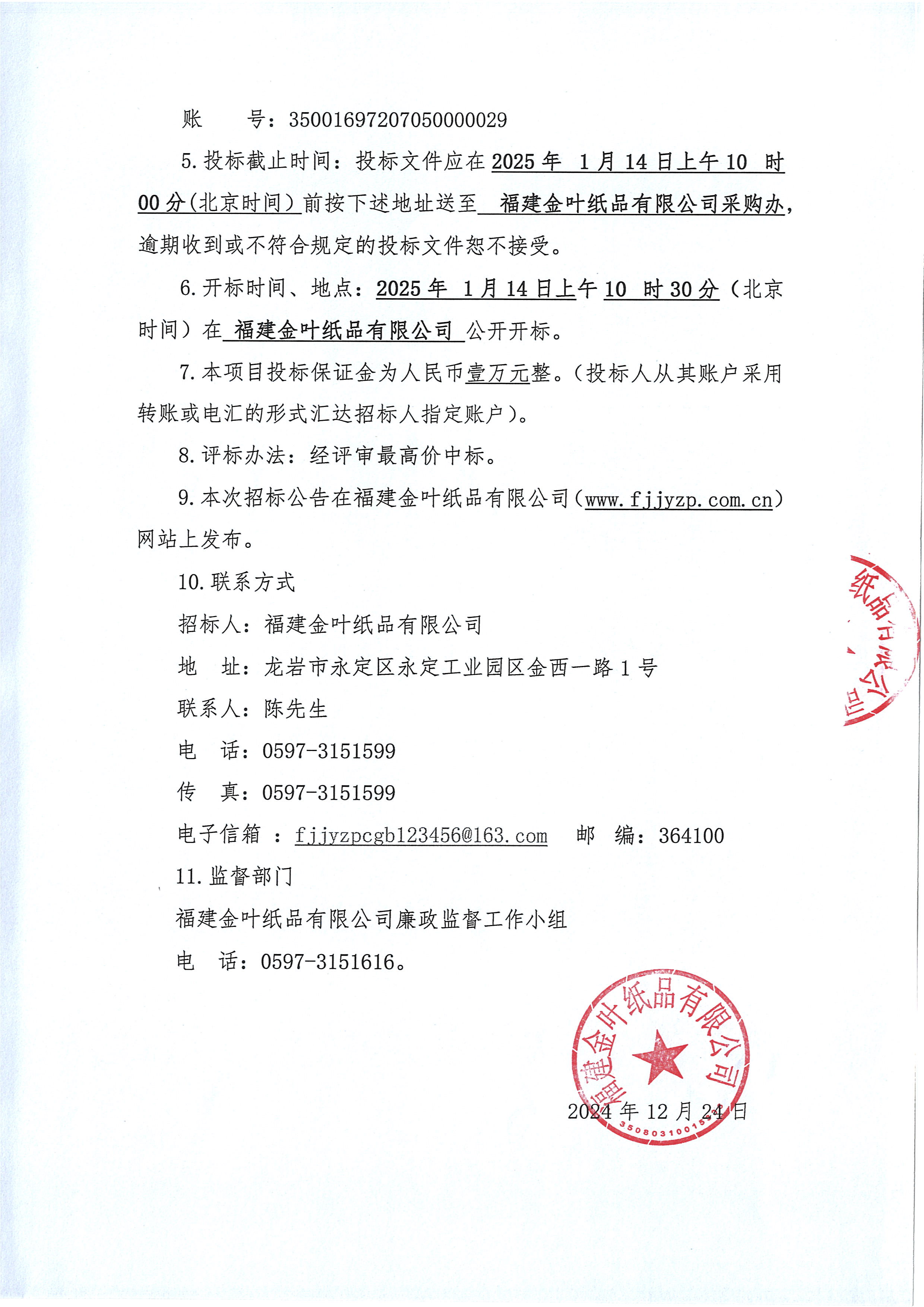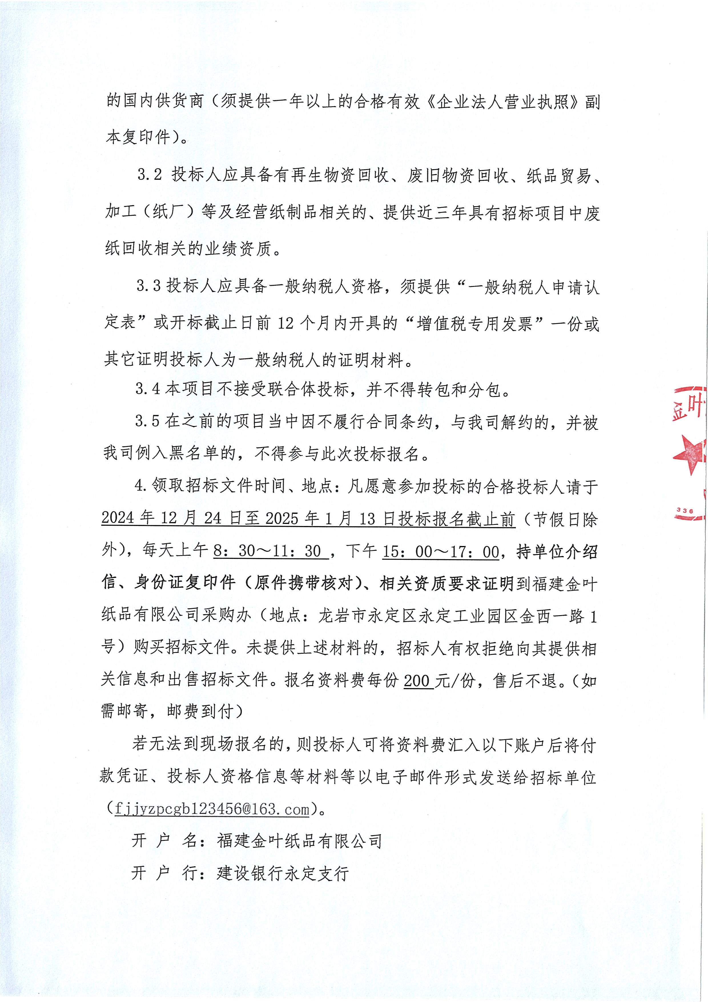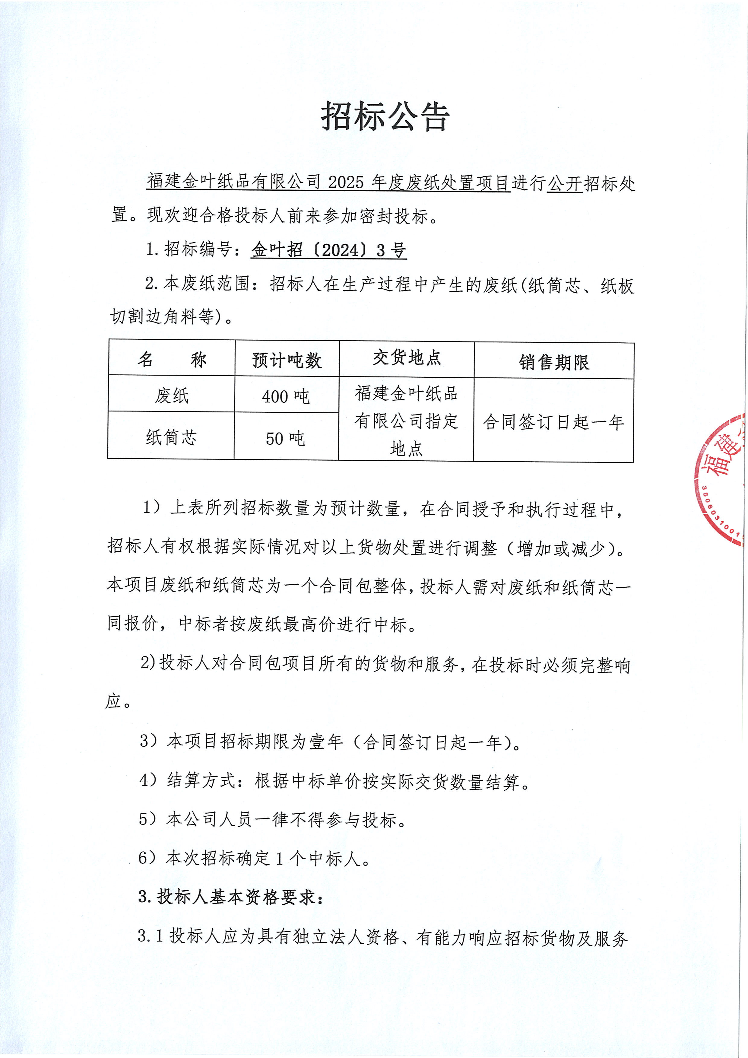 福建金葉紙品有限公司2025年度廢紙處置項目