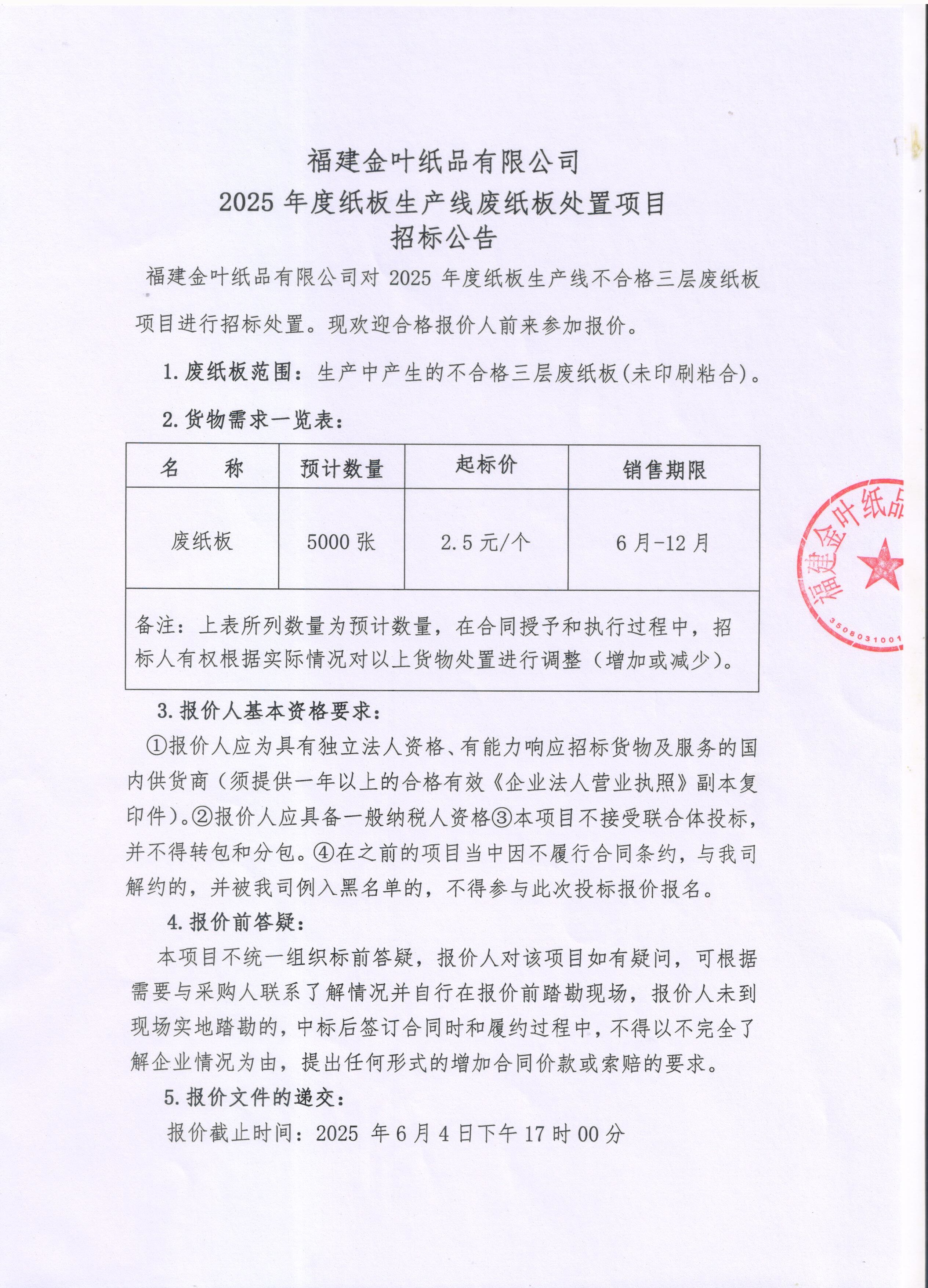 2025年度紙板生產(chǎn)線廢紙板處置項(xiàng)目